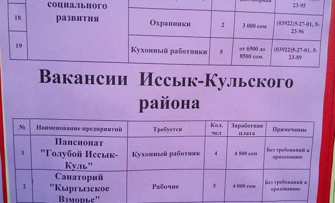Ысык-Көл областы боюнча бош орундар жөнүндө маалымат алышты.